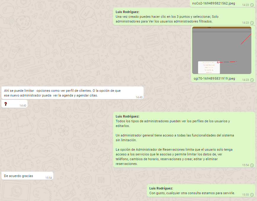 El usuario nos comenta que le gustaría agregar un usuario administrador y limitarle permisos como el ver usuarios y reservaciones.