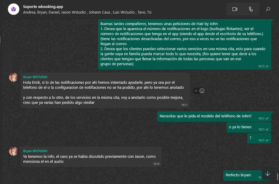Se pasa la solicitud con los compañeros del departamento de desarrollo.