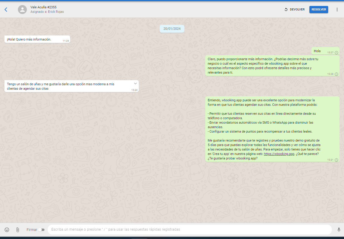 Se le dió seguimiento con las respuestas del bot