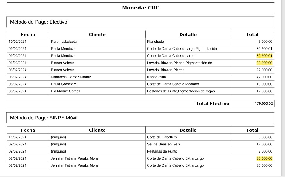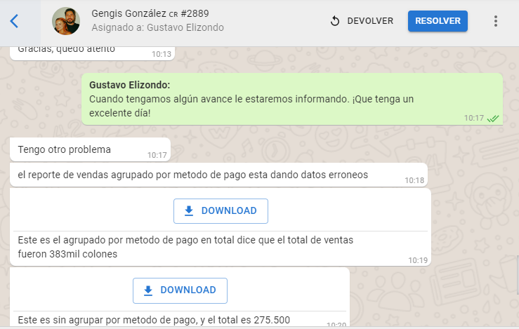 El cliente me informa que al generar un reporte de ventas utilizando los mismos parámetros da diferentes montos totales, lo único que cambian es la opción de "agrupar por métodos de pago" entonces debería ser el mismo monto. Al revisar el caso veo que en el reporte de ventas agrupado por métodos de pago algunos montos se duplican (se adjunta captura) La suma de estos montos repetidos es la diferencia entre ambos reportes. El caso se reportó con los compañeros del departamento de desarrollo y Bryan va a revisarlo.
