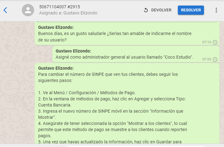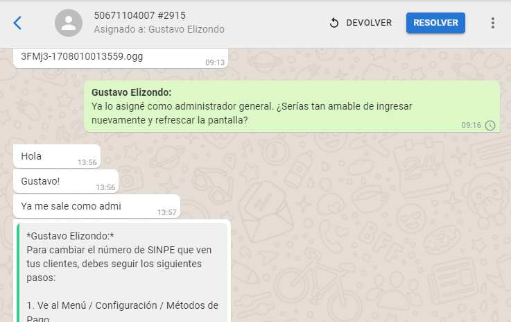 El cliente nos consulta cómo agregar métodos de pago en su estudio. Se le informa que su estudio no tiene el servicio de" ventas" el cual le permite registrar ventas y agregar los métodos de pago, se le informa que este módulo tiene un valor de $1 y si desea agregar métodos de pago debe adquirirlo. El cliente lo compra.