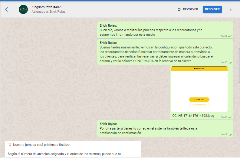 KINGDOM PAGS: Consulta sobre recordatorios de Whatsapp