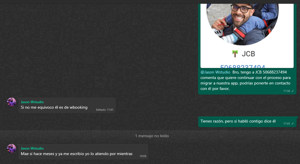 Solicita conversar con Jason para utilizar el sistema de Wbooking.app